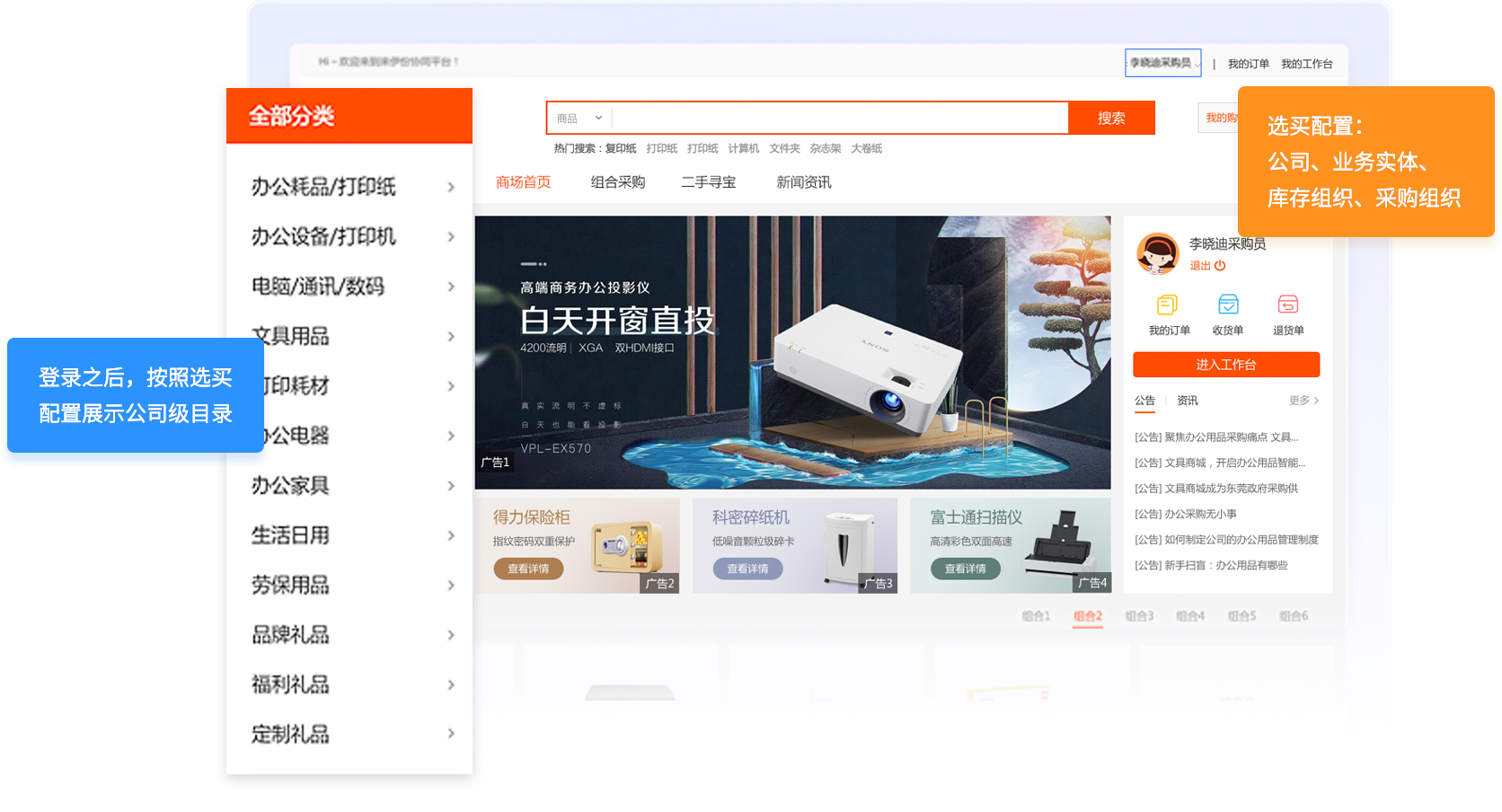 整合多电商平台资源,聚合商品数据,满足企业采购需求。提供优惠价格和优质服务,规范流程,使采购更透明高效。