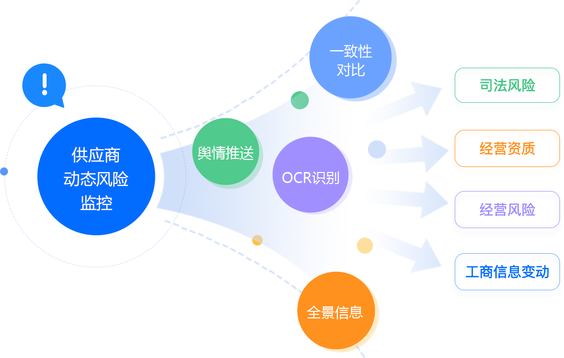 信用数据赋能:对接外部征信平台,轻松进行供应商资质合规性审核,供应商企业舆情动态一手掌握